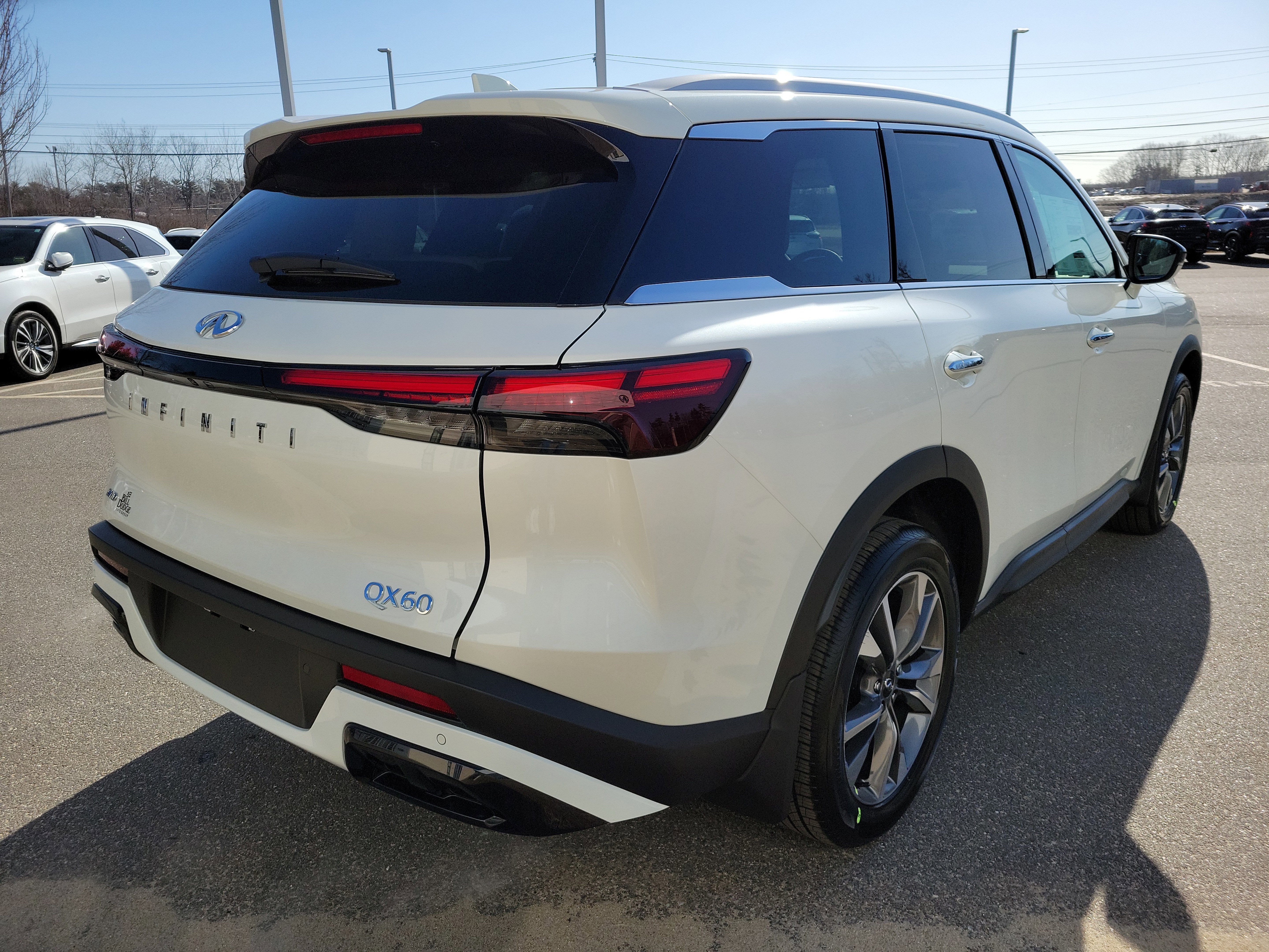 Scores 27 Highway MPG and 22 City MPG! This INFINITI QX60 boasts a Intercooled Turbo Premium Unleaded I-4 2.0 L/122 engine powering this Automatic transmission. SANDSTONE, LEATHER-APPOINTED SEATING SURFACES, MAJESTIC WHITE, [S55] LITERATURE KIT.*This INFINITI QX60 Comes Equipped with These Options *[L11] FLOOR MATS W/BENCH SEATS ON 3RD ROW TRAY, [E10] PREMIUM PAINT, [B92] SPLASH GUARDS, Window Grid And Roof Mount Diversity Antenna, Wheels: 20 x 8J Sporty Machined Aluminum Alloy -inc: dark silver finish, Valet Function, Trip Computer, Transmission: 9-Speed Automatic -inc: manual-mode paddle shifters and drive mode selector (personal, sport, auto, ECO and snow), Transmission w/Driver Selectable Mode and Oil Cooler, Tires: P255/50R20 All-Season.* Stop By Today *For a must-own INFINITI QX60 come see us at Bill Dodge INFINITI, 1 Saunders Way, Westbrook, ME 04092. Just minutes away!