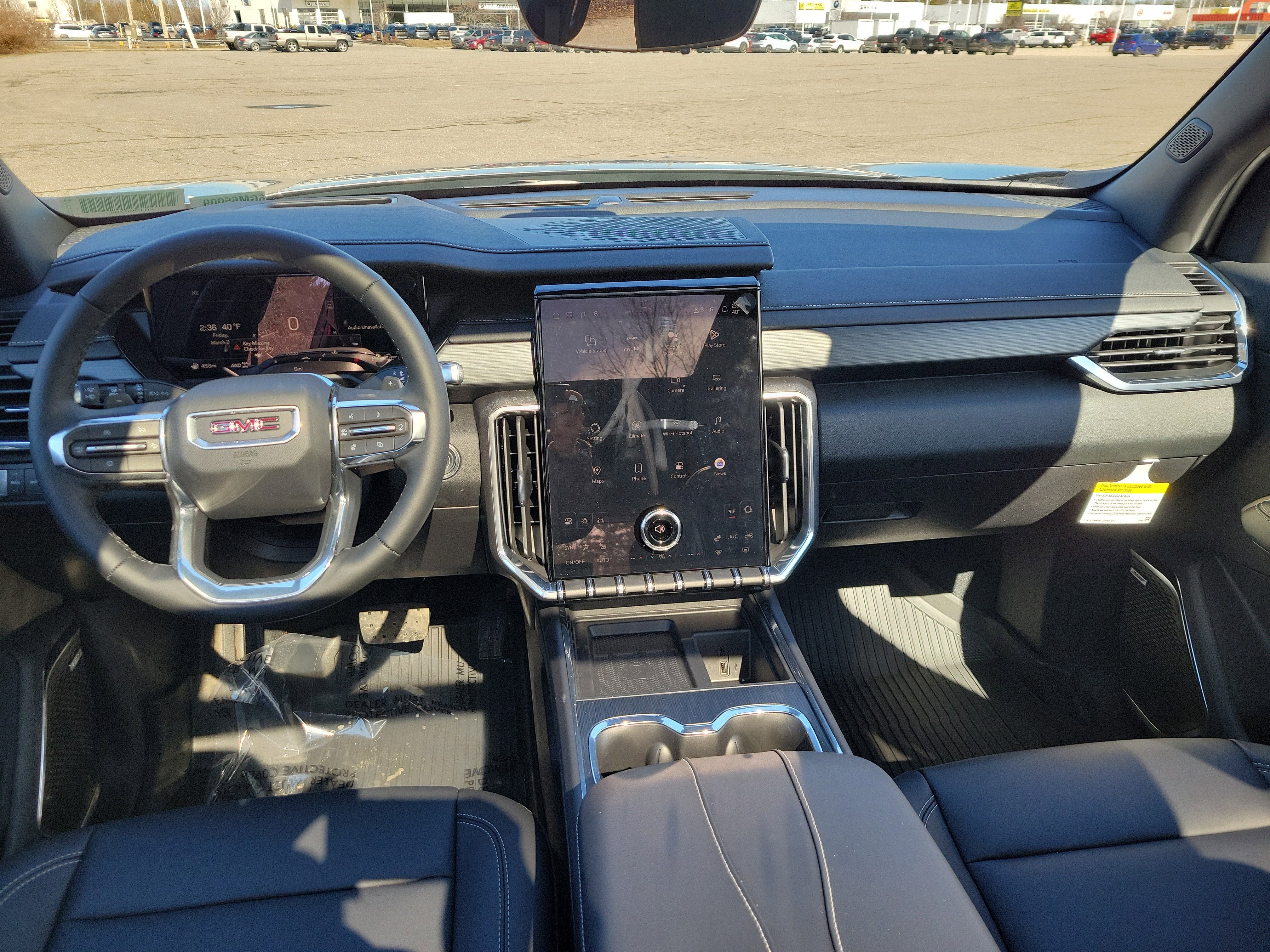 LUXURY PACKAGE includes (AKK) acoustic style windshield, (CMO) heated wiper park, (KA6) heated rear outboard seats and (UV6) 8" Diagonal Head-Up Display, LPO, FLOOR LINER PACKAGE includes (CAV) Integrated cargo liner, LPO, (RIA) first and second row All-weather floor liners, LPO and (RIB) third row All-weather floor liner, LPO, ELEVATION PREMIUM PACKAGE includes (ABE) 7-Passenger seating, (H7K) After Dark CoreTec or (H7L) Gideon Gray CoreTec seating, (A7J) 6-way power passenger seat adjuster, (AT9) passenger power lumbar seat adjuster, (Q76) 20" aluminum wheel, (Q3N) 20" all-season blackwall tire and (UG1) Universal Garage door opener , STERLING METALLIC, LPO, FRONT AND REAR SPLASH GUARDS, MOLDED, ENGINE, 2.5L TURBO DOHC SIDI with Variable Valve Timing (VVT) (328 hp [244 kW] @ 5500 rpm, 326 lb-ft of torque [442 N-m]) @ 3500 rpm) (STD), BLACK EDITION includes Black grille, Black badging, Black exterior accents, (V5R) Gloss Black roof rails, (SFZ) Black GMC emblems, LPO and (RVH) 22" Gloss Black aluminum wheels, Wireless Charging for select devices, Wipers, front intermittent with washers, Wiper, rear intermittent with washer.