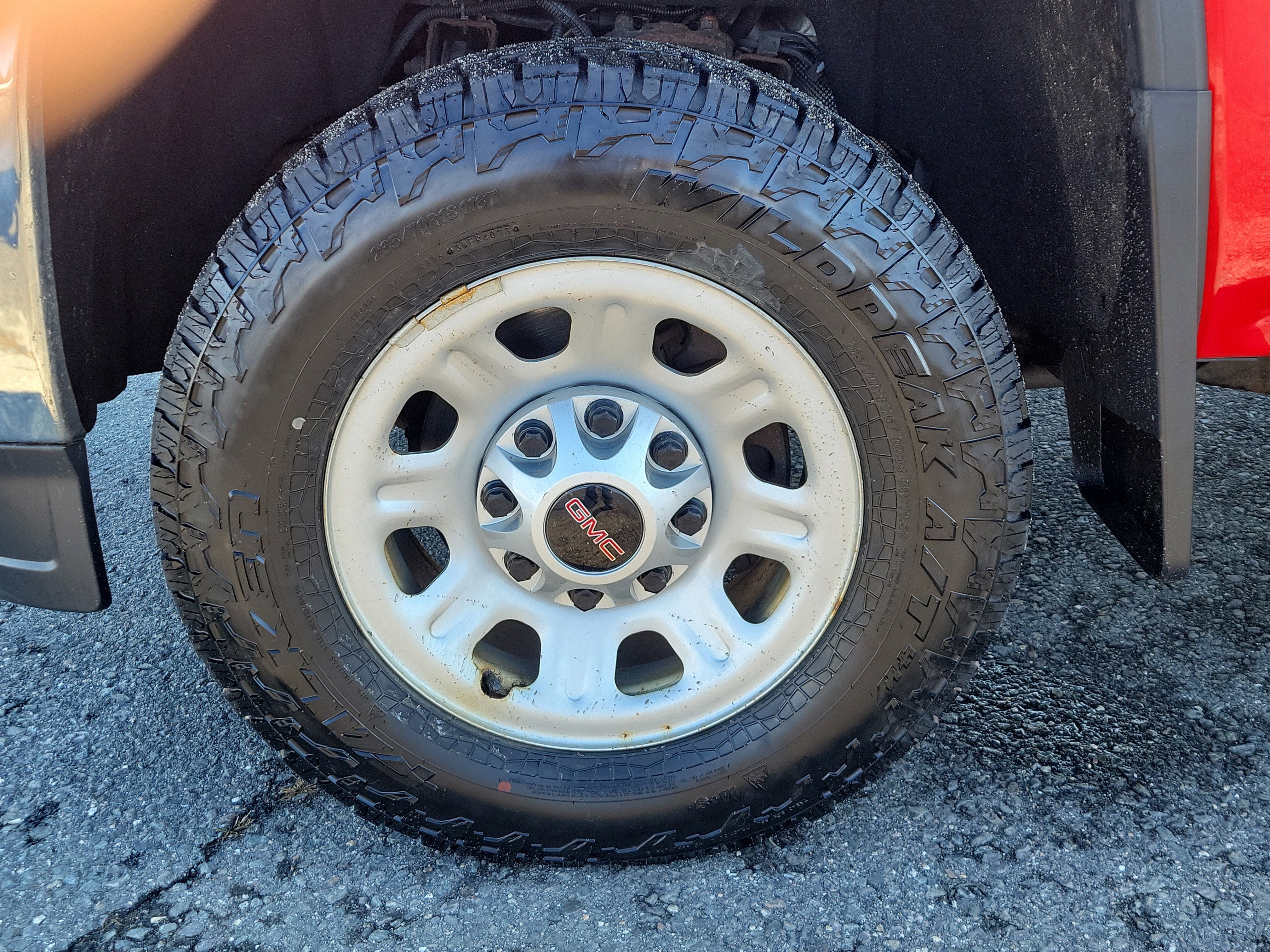 This Cardinal Red Sierra 2500HD does not pamper it performs. Camper/5th wheel wiring, 110-volt bed power outlet, LED cargo lighting, and high-intensity discharge headlights light up jobsites from predawn to midnight. Dual airbags, stability control, traction control, ABS, and low tire pressure warning run silent backup.